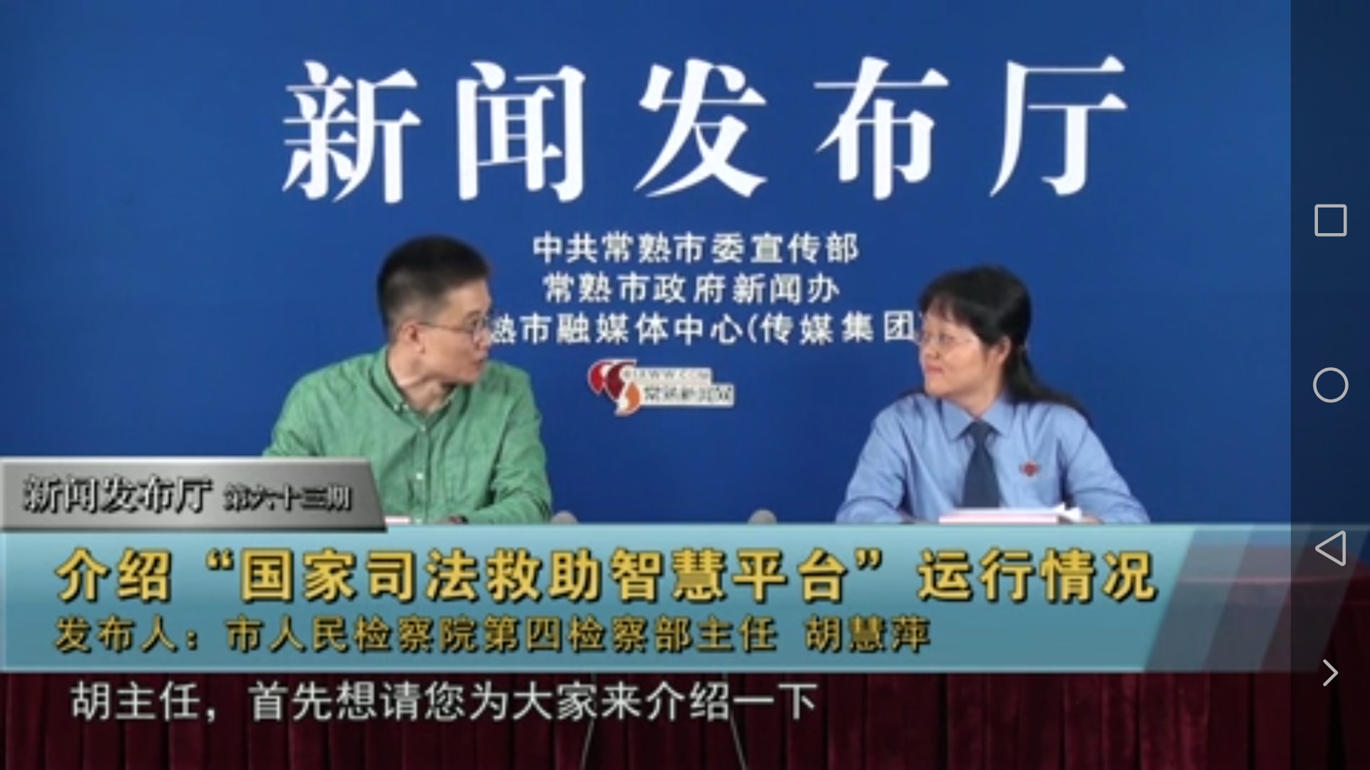 司法救助是助力脱贫攻坚、维护群众合法利益的有力武器。2018年,常熟市人民检察院推出了“国家司法救助智慧平台”,借助这一软件推动司法救助工作。新闻发布厅第六十二期邀请市检察院第四检察部主任胡慧萍,为大家介绍“国家司法救助智慧平台”的运行情况。
