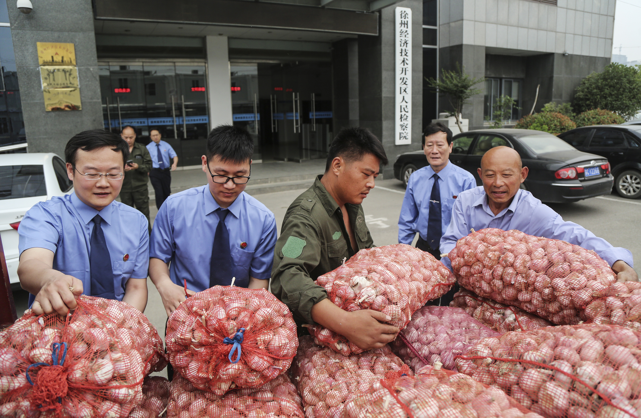 近日,江苏省徐州经济技术开发区检察院根据结对帮扶有关要求,针对今年大蒜行情持续走低的实际情况,组织全院干警自费购买徐庄镇低收入农户3000斤鲜蒜,解大蒜滞销困境,此举受到了蒜农们称赞。(高刚)