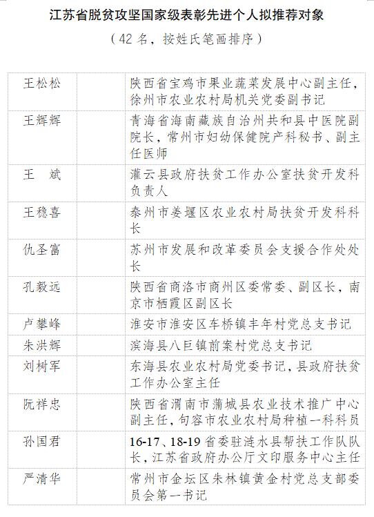 原标题:江苏省脱贫攻坚国家级表彰先进个人、先进集体拟推荐对象公示