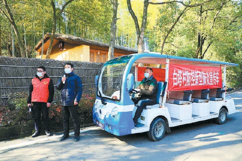 “各位村民,外头虽然暖洋洋,也覅出来调桑忙(宜兴话),病毒就快要消灭,蹲家也是作贡献!”欧阳华戴着口罩,拿着话筒,背着音箱,操着一口地道的乡音,带领村干部、党员、志愿者走遍各自然村,向村民们一遍遍喊话。