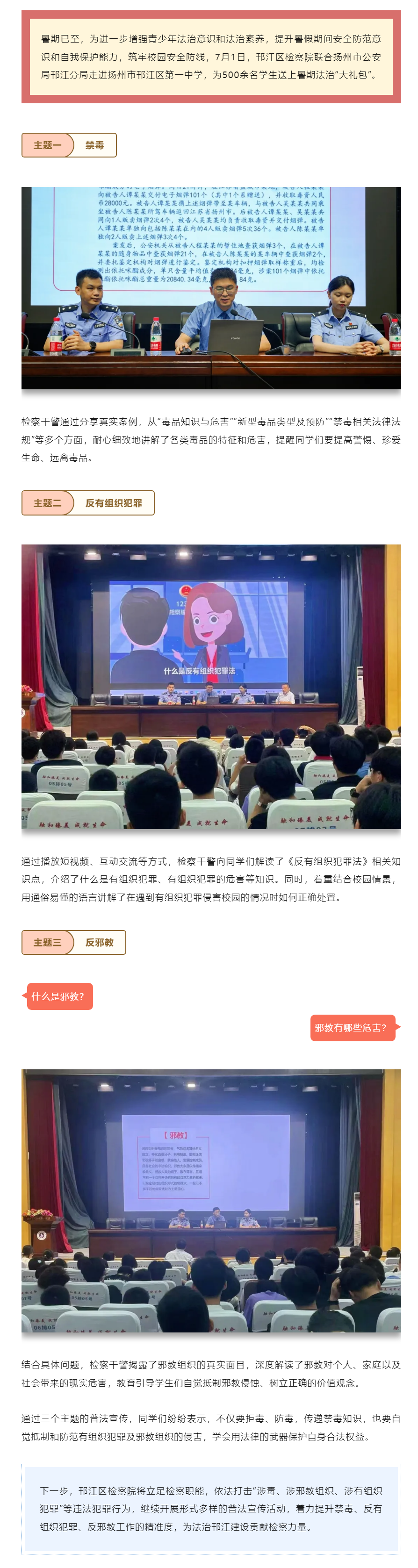 扬州市邗江区检察院为500余名学生送上暑期法治“大礼包”
