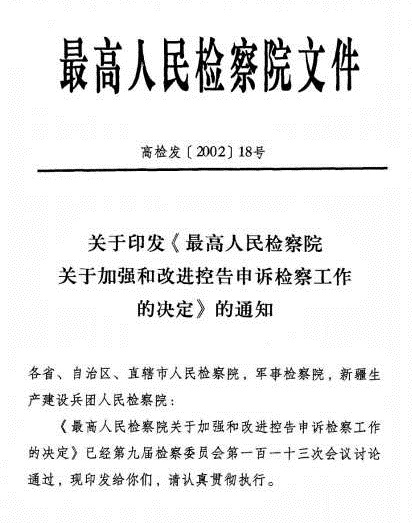 为进一步解决人民群众告状难、申诉难问题,2002年11月,最高人民检察院在总结控告申诉检察工作经验的基础上,制定印发《关于加强和改进控告申诉检察工作的决定》,对坚持检察长接待日和阅批群众来信制度、实行控告申诉首办责任制、积极推行公开审查制度、深入开展文明接待活动、认真妥善处理来信来访、加大办理控告申诉案件力度、提高办理刑事赔偿案件质量等作出系统规定。《决定》有力推动了控告申诉检察工作规范发展,对于更加充分发挥法律监督职能,切实维护司法公正和人民权益具有重要意义。(张川整理)