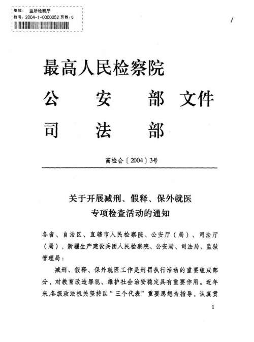 最高人民检察院、公安部、司法部《关于开展减刑、假释、保外就医专项检查活动的通知》