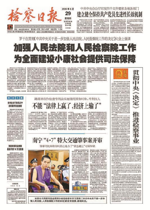 2006年5月,党中央印发《中共中央关于进一步加强人民法院、人民检察院工作的决定》(下称《决定》),这是党中央第一次专门就加强人民法院、人民检察院工作作出决定,充分体现了党中央对法治建设和司法工作的高度重视,对于推进依法治国、建设公正高效权威的中国特色社会主义司法制度具有重大意义。同年6月,最高人民法院、最高人民检察院在北京联合召开会议,对深入学习贯彻《决定》作出全面部署。时任中共中央政治局常委、中央政法委书记罗干出席会议并讲话。全国检察机关认真落实《决定》各项部署,坚持党对检察工作的绝对领导,坚决服务改革发展稳定大局,着力维护人民群众根本利益,积极稳妥推进检察改革,切实加强检察队伍建设,有力促进了检察工作开创新局面。