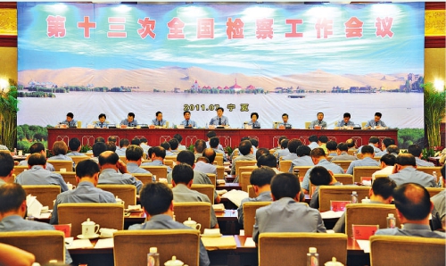 2011年7月16日至20日,第十三次全国检察工作会议在宁夏银川召开。时任最高人民检察院检察长曹建明在会上作了题为《强化法律监督、维护公平正义、推动科学发展、促进社会和谐,不断开创中国特色社会主义检察事业新局面》的工作报告。会议回顾了第十二次全国检察工作会议以来的检察工作,明确提出了“十二五”时期检察工作的总体思路、目标要求和重大举措。这次会议是在我国全面实施“十二五”规划纲要的形势下召开的,对于把中国特色社会主义检察事业继续推向前进,为经济社会又好又快发展提供有力司法保障具有重要意义。(由佳田整理)