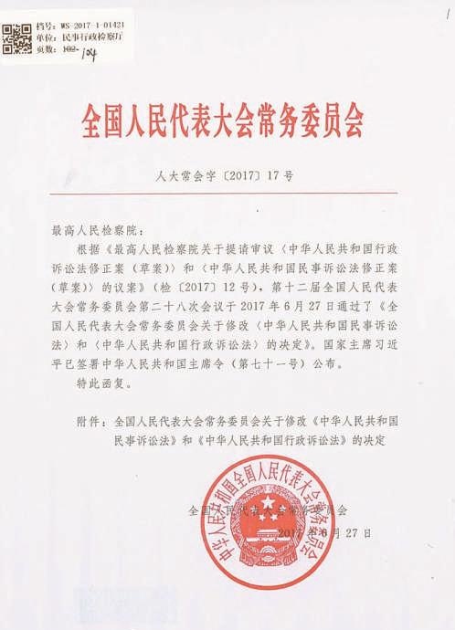全国人民代表大会常务委员会关于修改《中华人民共和国民事诉讼法》和《中华人民共和国行政诉讼法》的决定