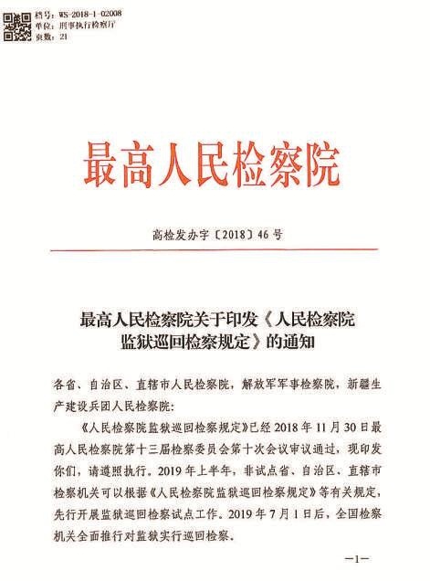 最高人民检察院关于印发《人民检察院监狱巡回检察规定》的通知