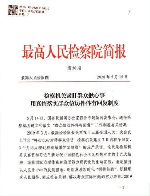检察机关紧盯群众揪心事用真情落实群众信访件件有回复制度(档案类型:文书档案;保存地:最高检档案馆)