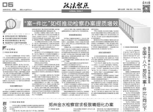 2020年1月,最高人民检察院印发《检察机关案件质量主要评价指标》,正式建立以“案-件比”为核心的案件质效评价体系。“案-件比”指发生在人民群众身边的“案子”,与进入司法程序后所经历的有关诉讼环节统计出来的“案件”形成的对比关系。最优“案-件比”是1∶1,即老百姓一个案子,进入检察程序后一次性办结,办案质效最高,司法资源投入最少,当事人感受更好。设立这一评价指标,目的是引导检察办案求极致,惠及群众、减少讼累。2020年刑事检察“案-件比”为1∶1.43,“件”同比下降0.44,压减了41.2万个非必要办案环节、统计中的“案件”,办案质效明显提升。“案-件比”被各界形象地比喻为“司法办案质效的GDP”“新时代引领检察办案质效的风向标”。(骆贤涛 王凯整理)