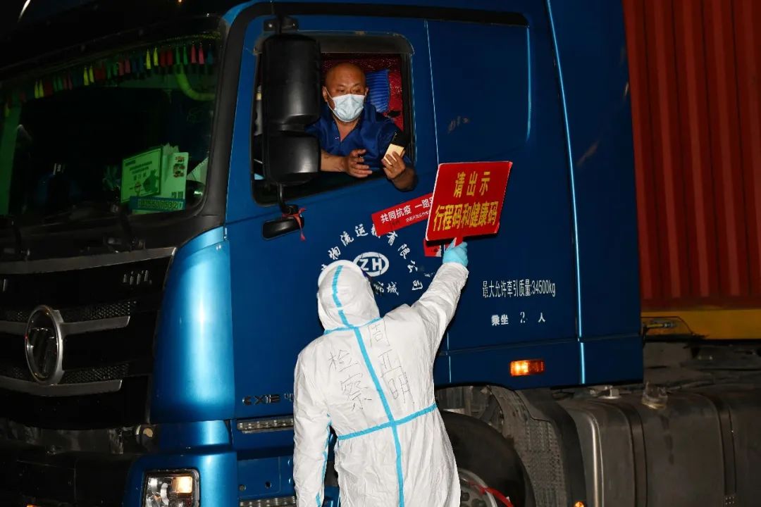“全副武装”后,我来到自己的岗位,今天我负责卡口第一岗:查验驾驶员的“双码”及核酸报告。由于货车不熄火,发动机的轰鸣声逼使我们不断提高说话的声调,一遍遍告诉每个驾乘人员我们需要查验什么信息。过程中,也会遇有走错高速口或手续不全的情况,我们要耐心向司机说明情况,告诉他们接下来如何做。