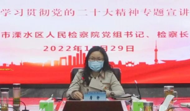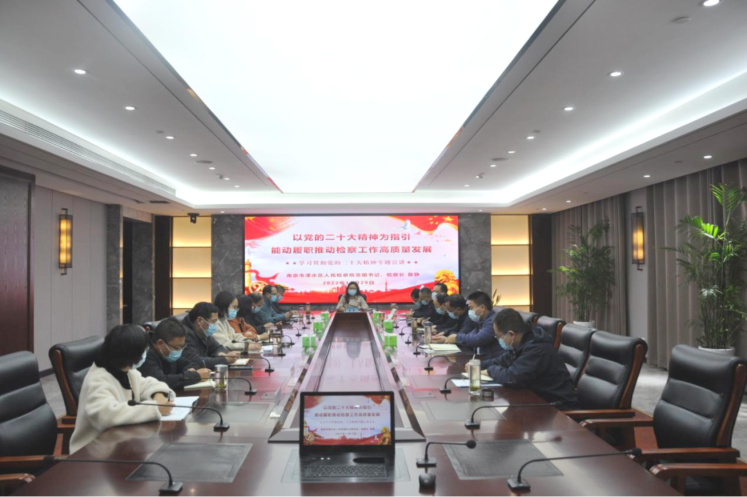 为全面深入学习宣传贯彻党的二十大精神,近日,江苏省南京市溧水区检察院党组书记、检察长詹静以《以党的二十大精神为指引,能动履职推动检察工作高质量发展》为题,为全院中层以上干部、员额检察官作党的二十大精神专题宣讲。