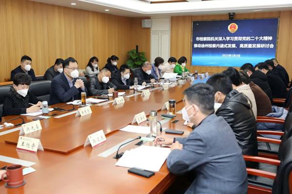 近日,江苏省徐州市人民检察院召开“深入学习贯彻党的二十大精神,推动徐州检察内涵式发展、高质量发展研讨会”,总结回顾2022年工作、成绩及经验,深刻剖析问题不足,研究谋划新任务。市院党组书记、检察长王旭奇主持会议并讲话,全体院领导、部门主要负责人参加会议。