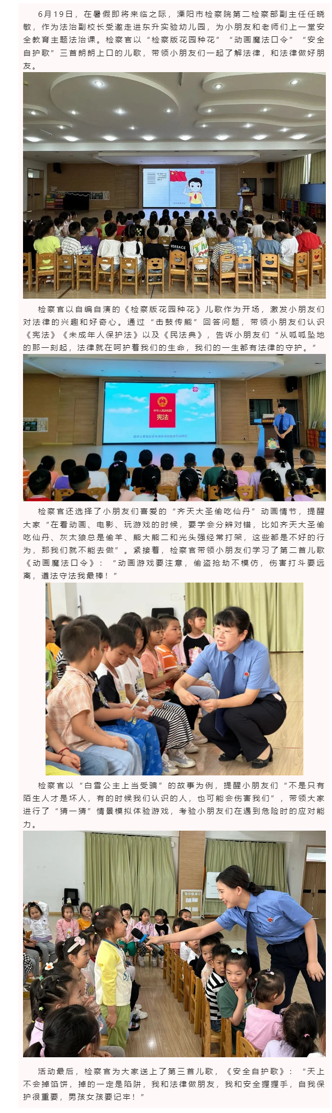 用儿歌带领小朋友们了解法律 溧阳市检察官在孩子们的花园里种下法治的种子