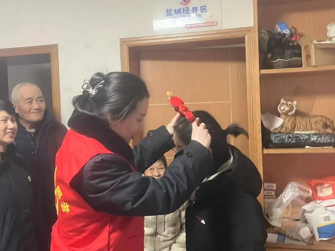 活动中,盐城经开区检察院团支部联动未检部门、检察官宣讲团和青年志愿者服务队,以4名“梦想小屋”受助青少年为重点关爱对象,开展把新春大礼包送到家、把龙年吉祥画送到家、把法治安全送到家的“三送”暖冬行动。