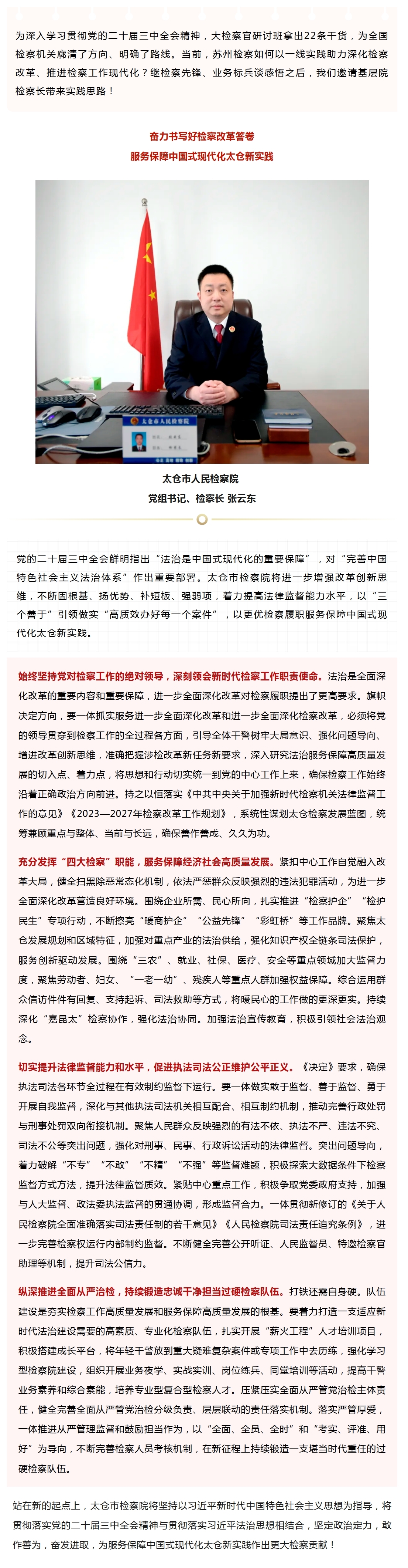 张云东:奋力书写好检察改革答卷 服务保障中国式现代化太仓新实践