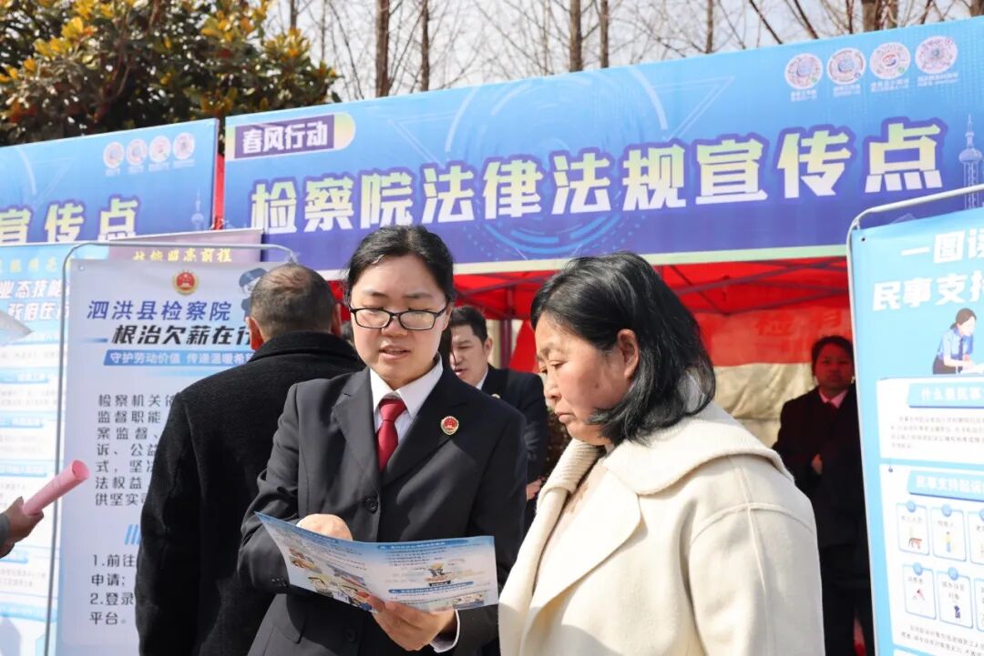 春风送岗又送法。2月19日至21日,正值农历大年初三至初五,在江苏省泗洪县“春风行动”招聘会上,泗洪县检察院将普法摊位摆到了招聘会现场,检察官们带着 “新春法治礼包”,把法律服务送到了务工群众和企业 “家门口”。