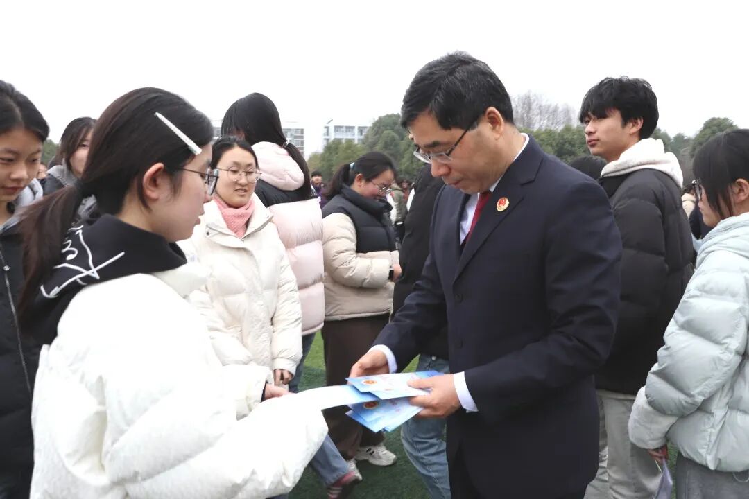 向师生发放普法宣传册,将核心法律知识、维权渠道等内容“打包”送上,方便随时学习查阅。面对面解答师生法律疑问,提供精准普法服务,切实提升师生法治获得感与安全感。