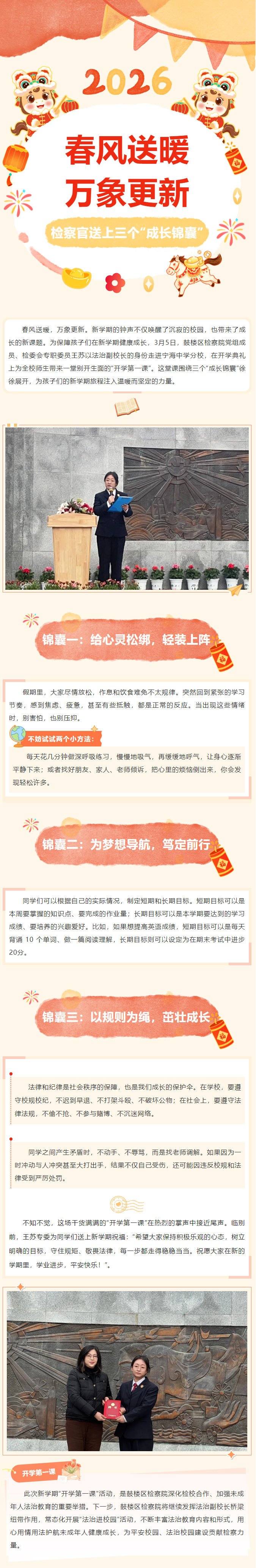 新学期,南京市鼓楼区检察官送上三个“成长锦囊”