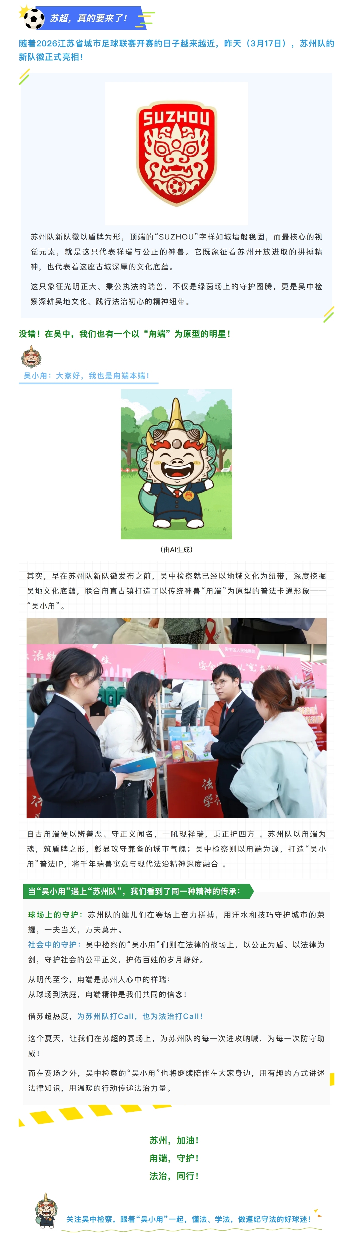 苏超燃情!苏州市吴中区检察院与甪端共守法治荣光