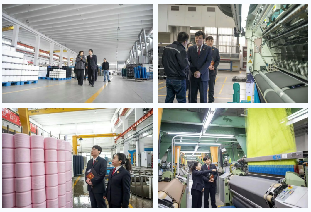 为精准对接企业发展需求,助力高纺园区产业提质升级,近日,江苏省射阳县人民检察院服务企业团队深入高纺园区,先后走访上海题桥江苏纺织科技有限公司、杜倍题桥纺织(江苏)有限公司,开展实地调研与助企服务,以检察力量护航企业高质量发展。