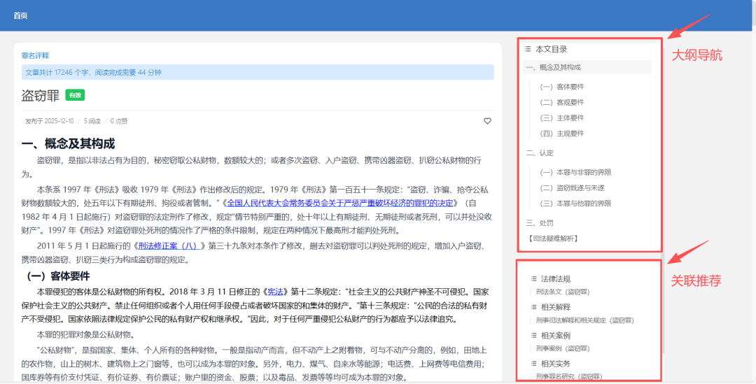 从法律法规、司法解释,到指导性案例、实务观点、文书格式……2.27万余篇资料,全部精准关联,集成一体。点击一个罪名,与之相关的刑法条文、司法解释、典型案例、实务观点,一键直达,无需在多本书籍、多个网站间反复跳转。