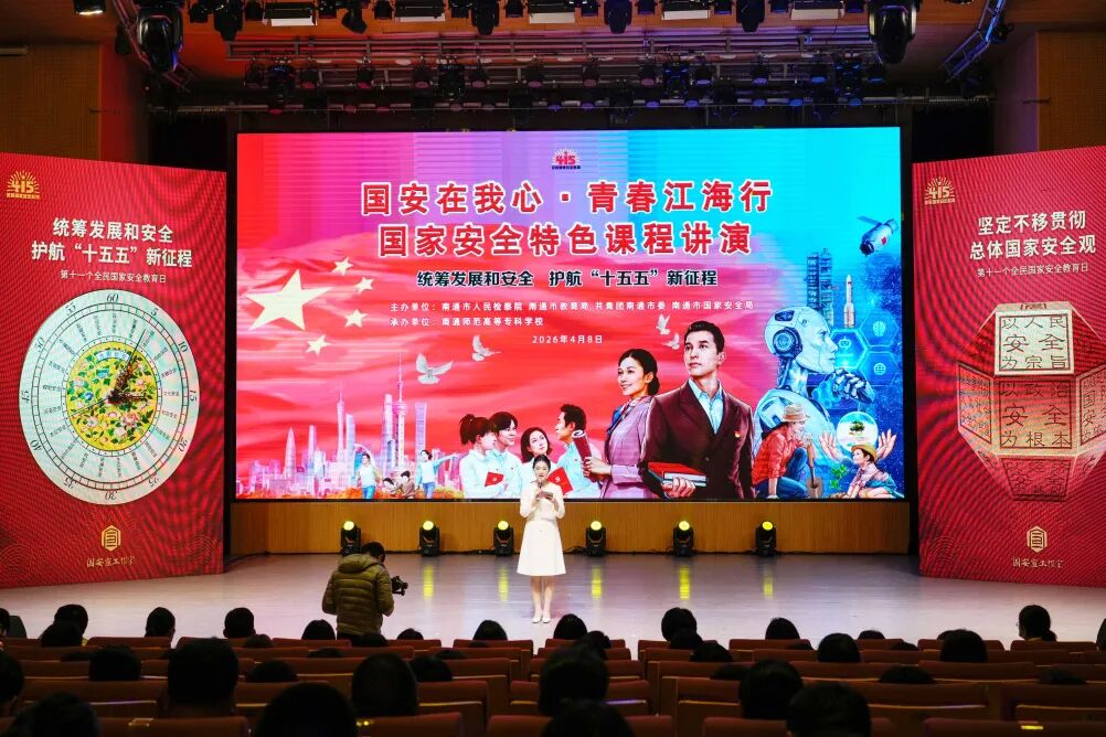 4月8日,江苏省南通师范高等专科学校内掌声阵阵,第二届“国安在我心 青春江海行”国家安全教育特色课程讲演活动在此开展。此次活动由南通市国家安全局联合市人民检察院、市教育局、共青团南通市委共同举办。来自市检察院、深蓝航天、中天科技、市规划馆的5位专家,带着各自领域的履职故事与前沿知识,为即将走上教师岗位的师范生们,带来一堂涵盖政治、太空、人工智能、生态四大领域的国家安全生动课程,推动总体国家安全观在青年准教师心中扎根生长。