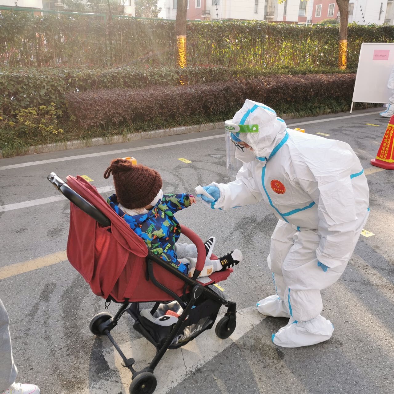 工作状态:我在给小朋友测量体温。