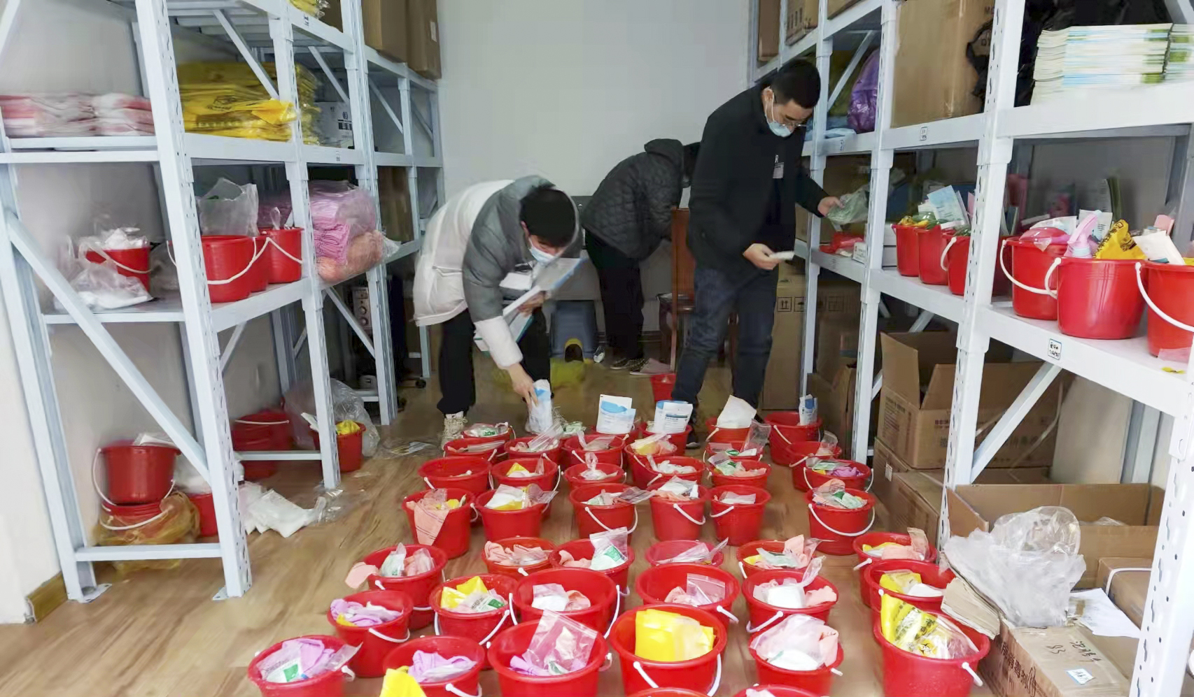 工作状态:在隔离点进行防疫物资清点分发工作。
