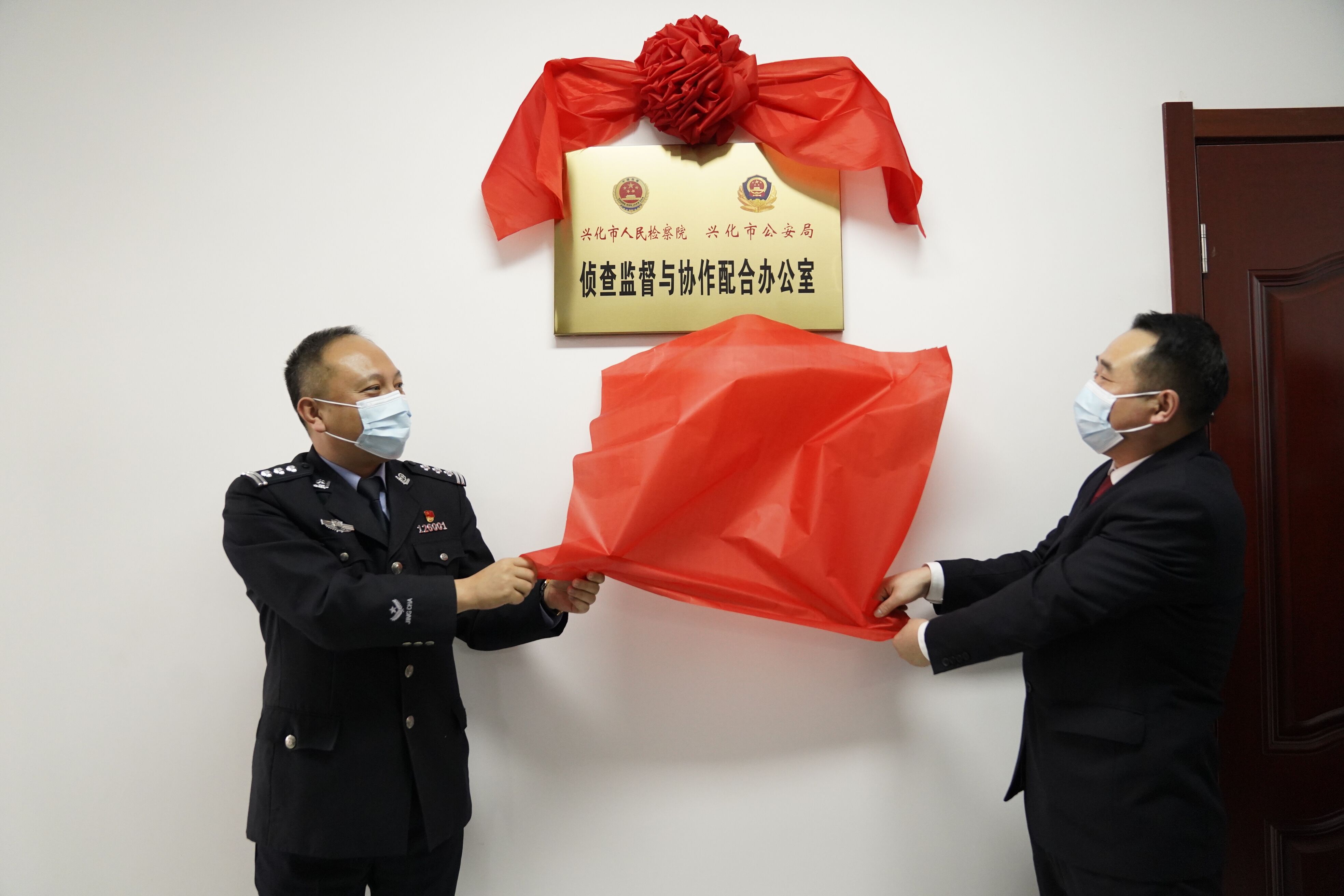 工作状态:我正在兴化市公安局执法办案中心参加兴化市检察院与市公安局“侦查监督与协作配合办公室”揭牌仪式。