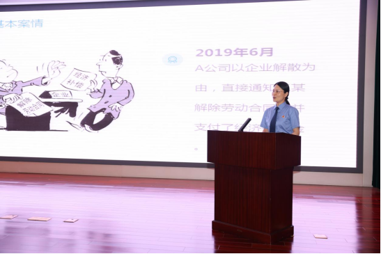 专家评议明晰法理,引导化解矛盾。公开听证由承办检察官主持,参加听证的劳资双方围绕案件争议焦点发表各自意见,出示相关证据。听证员仔细询问后经过评议,认为综合工资、社保支付、实际工作岗位等情况,王某应为A公司员工,企业解散并与员工终止劳动合同关系合法,王某请求支付赔偿金没有法律依据。双方认可检察机关意见,但王某怨气未消,心绪难平。检察机关引导企业从人文关怀、社会责任角度处理纠纷,尊重老员工对企业的情感,反省公司解散时未与员工充分沟通协商等问题。企业接受建议,对于未考虑员工感受,沟通、管理上的不当之处当场向王某赔礼道歉,同时表示愿给王某一定经济补偿。检察官及时肯定企业的诚意,也希望王某体谅企业难处,王某接受道歉,同意和解并签订息诉罢访承诺。