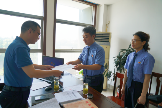 2023年6月,姜堰区人民检察院向基层组织现场送达检察建议书