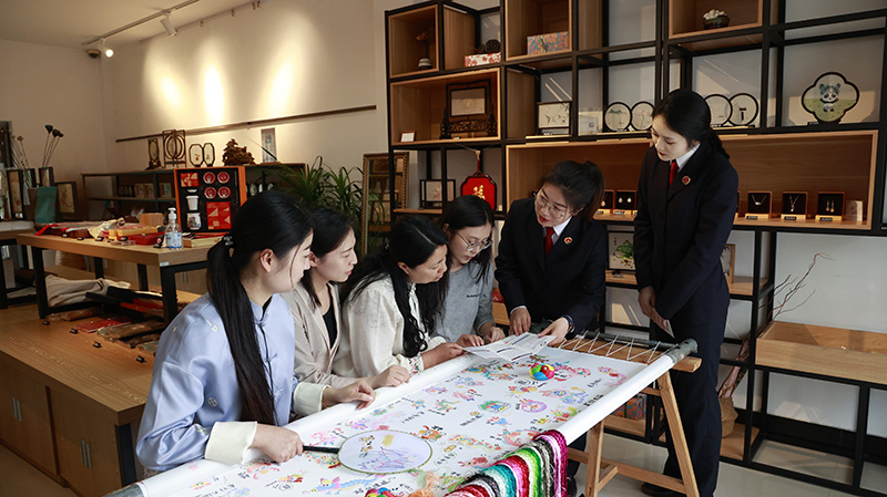 虎丘区检察院还在镇湖绣品街建立“苏绣检察服务中心”,研发上线“苏绣E检通”微信小程序,牵头协调区行政机关和行业协会共同制定《关于促进镇湖苏绣行业发展的若干意见》,实现传统文化保护资源共享、优势叠加。2023年4月,虎丘区检察院就调研发现的苏绣保护面临的难点、堵点问题,向区委政法委专题汇报。区委政法委牵头在虎丘区检察院“苏绣检察服务中心”有序运转、成效良好的基础上,将其升级为全区“苏绣品牌法治保障中心”,形成“5+N”工作机制(5包括:区委政法委、区法院、区检察院、区公安分局、区市场监管局,N包括镇湖街道、区文旅局、区妇联、刺绣协会等)。虎丘区检察院聘请多名苏绣非遗传承人担任“益心为公”专家志愿者,针对志愿者反映的苏绣直播新业态中的问题,联合镇湖刺绣协会发布《苏绣行业合规经营倡议书》,加强苏绣产业新业态治理,提升行业合规自律水平。