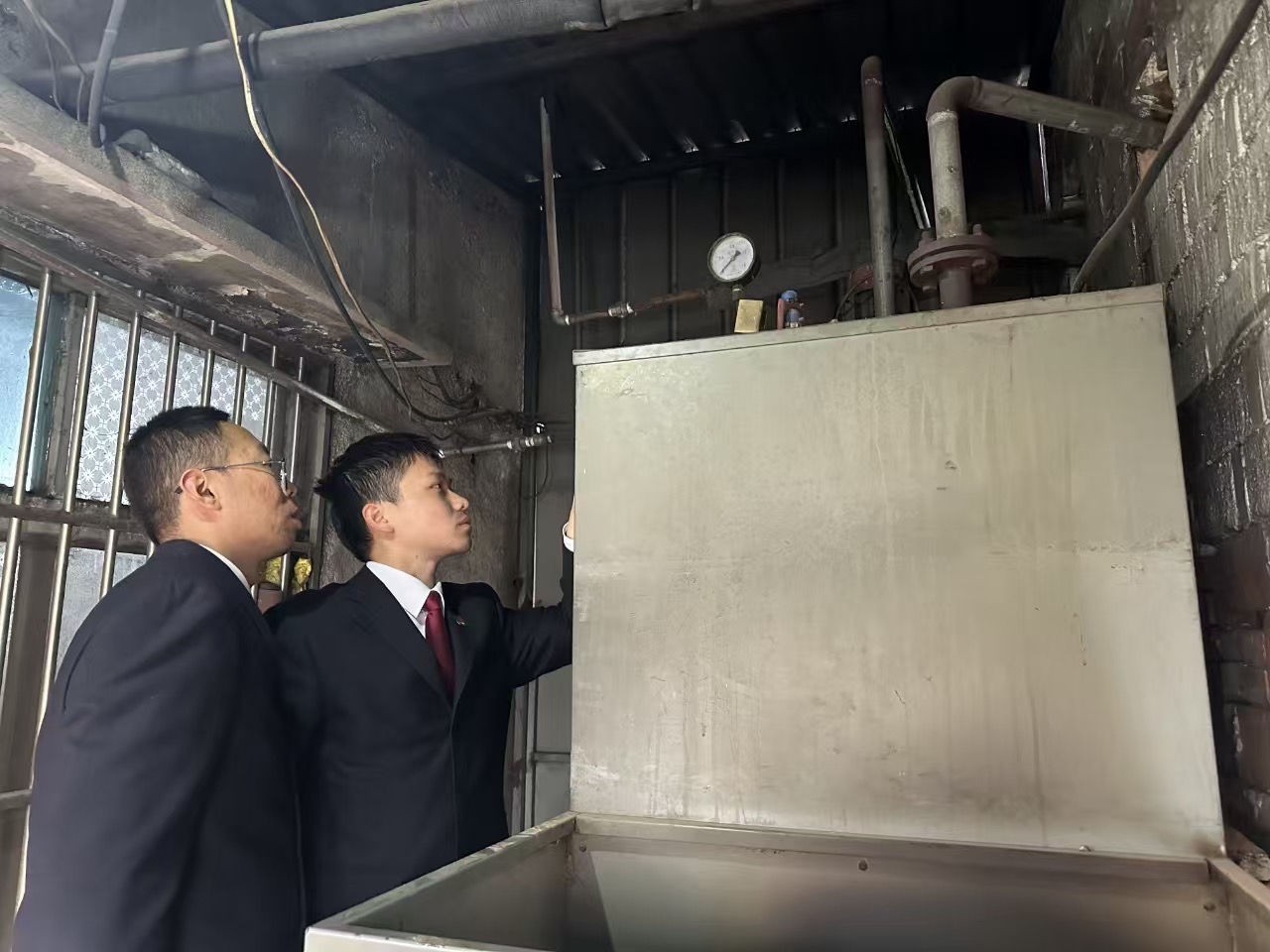 泰兴市院集中公益诉讼、法警、技术等力量成立专案组,开展调查核实工作:一是进行数据比对,以“浴室”“浴场”为关键词将地图检索信息与企业信用信息碰撞分析,共筛查出全市17个乡镇的乡村浴室102家;二是现场调查,分三个调查小组对102家乡村浴室的锅炉房、消防疏散通道等逐个排查并固定证据;三是依法询问浴室经营者、相关职能部门负责人,掌握浴室经营和职能部门日常监管履职情况;四是委托泰兴市产品质量综合检验检测中心对部分浴室的锅炉进行水容积测试。调查发现,5家浴室使用的“蒸汽发生器”铭牌标注额定水容积为29.5升或小于30升,但实测水容积为30.18升至102.72升不等,此类设备利用“大容小标”逃避特种设备监管。此外,乡村浴室还普遍存在消防设施缺失,锅炉房燃料存放占用安全出口、疏散通道等消防违法行为。上述情形具有重大安全生产风险隐患,损害社会公共利益。