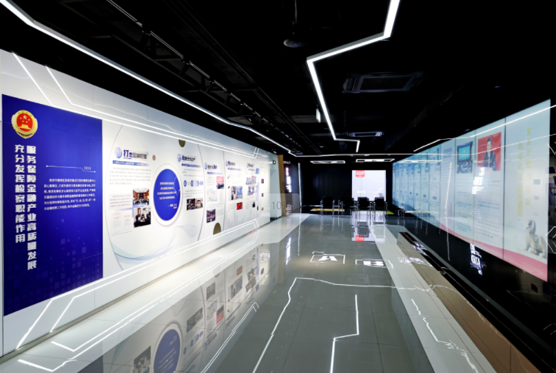 展示品牌工作,赋能检察主业与金融集聚。法治基地集教育、警示、交流、研究功能于一体,设金融犯罪检察和金融领域职务犯罪警示教育两大主题展区,专注于金融风险防范,通过数字化控制技术,实现一键切换功能,用可体验的展示和丰富的活动形式,图文并茂地展示了检察机关落实“打击金融犯罪、处置涉案资产、推动行业治理、防范金融风险、加强业务研修”一体化工作机制,在惩治金融犯罪、强化法律监督、防范金融风险上的具体做法和成果。