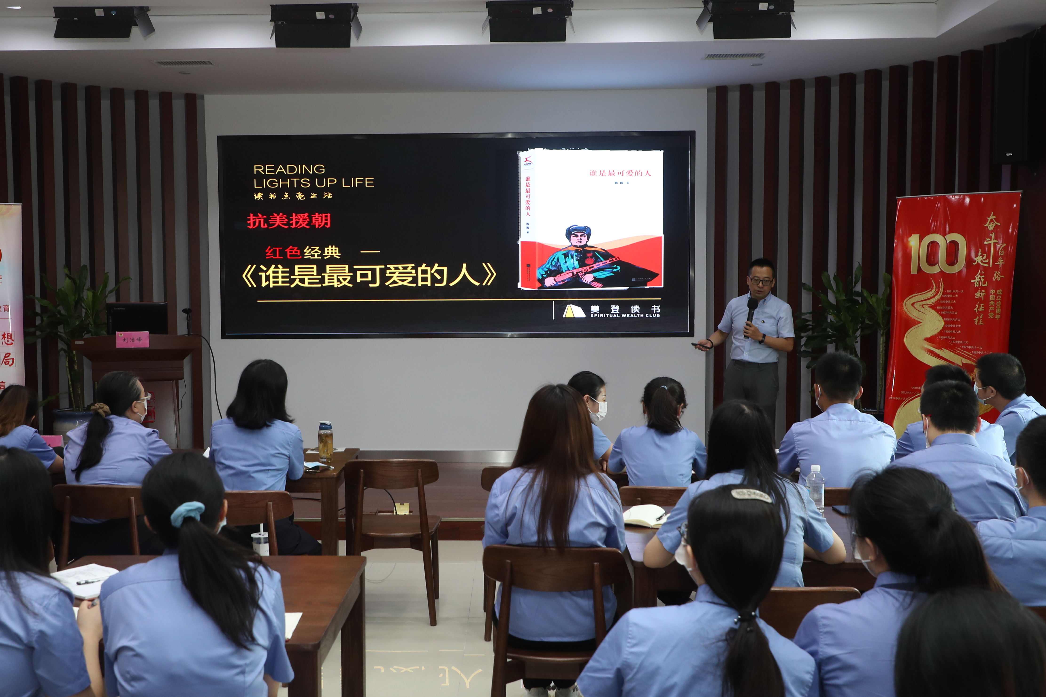 百年风华、不忘初心。为深入学习贯彻习近平总书记在庆祝中国共产党成立100周年大会上的重要讲话精神,进一步推进党史学习教育和 “书香机关”建设,巩固队伍教育整顿成果,8月20日下午,江苏省常州市检察院举行“百年风华、不忘初心”阅读领读活动暨红色经典读书分享会,邀请“樊登读书”讲师刘洁峰领共读红色经典书籍《谁是最可爱的人》。本次读书分享会由市院机关党委、团支部举办,由团支部组织委员陈楚主持,市院各部门和天目湖地区院的退役军人代表、青年检察人员等30余人参加本次活动。