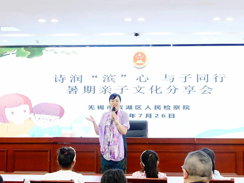 为进一步融洽干警职工亲子关系,传承弘扬优秀传统文化,激发干警及其子女对传统诗词文化的兴趣,7月26日,江苏省无锡市滨湖区检察院诚邀江苏省优秀文化骨干、无锡市文化旅游局专家库专家、梁溪区作协副主席黄玉梅老师为大家开展了一次“诗润‘滨’心 与子同行”暑期亲子文化分享活动。该院部分干警带小朋友、部分热爱诗词的年轻干警、共建社区——溪南社区、孙蒋社区的部分家长和小朋友们参加了此次活动。滨湖区检察院党组书记、检察长舒广权出席活动。